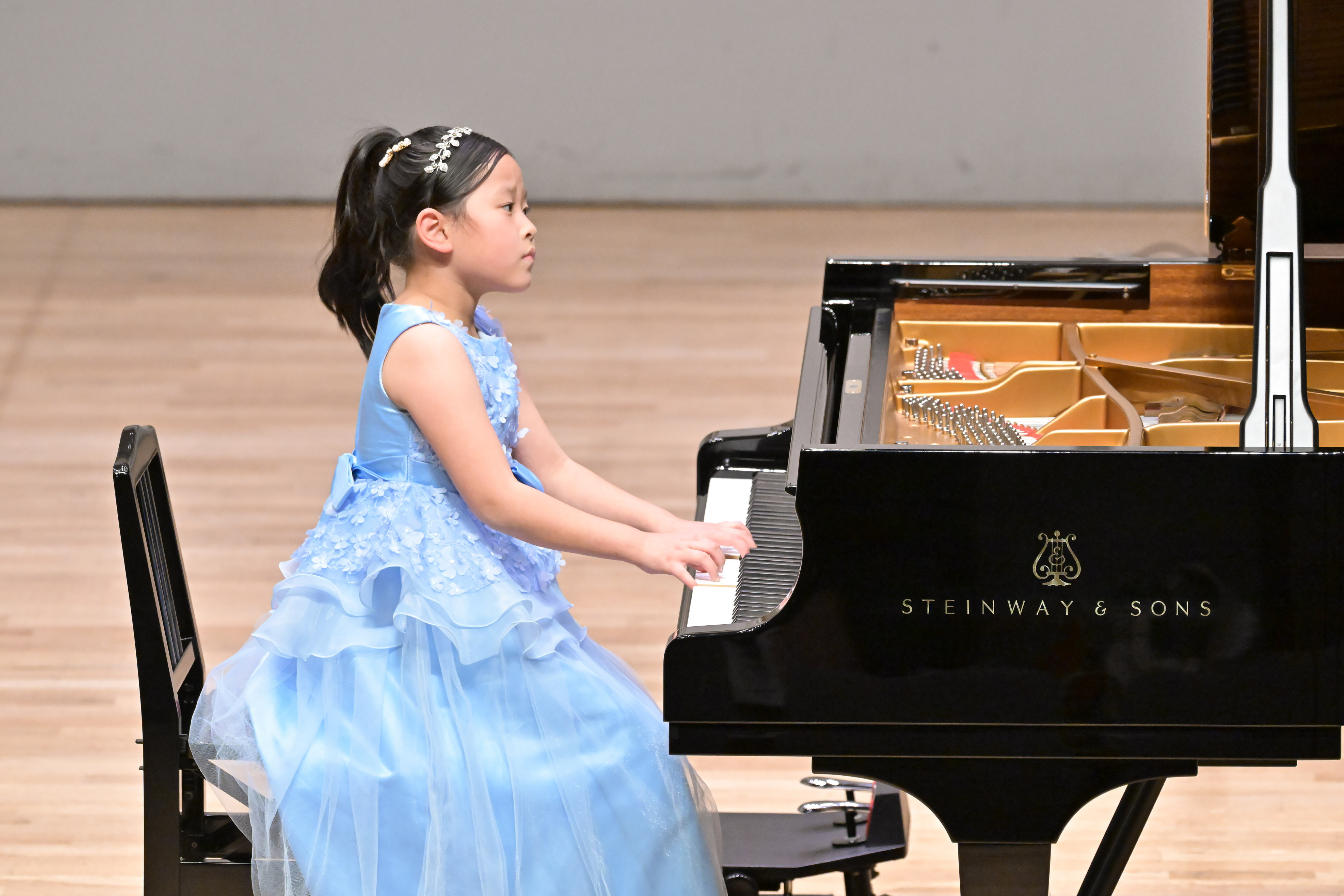 舞台袖では、練習通り出来るか不安でしたが、ステージに出てピアノを弾くと、緊張がほぐれて、のびのびと弾く事が出来ました。